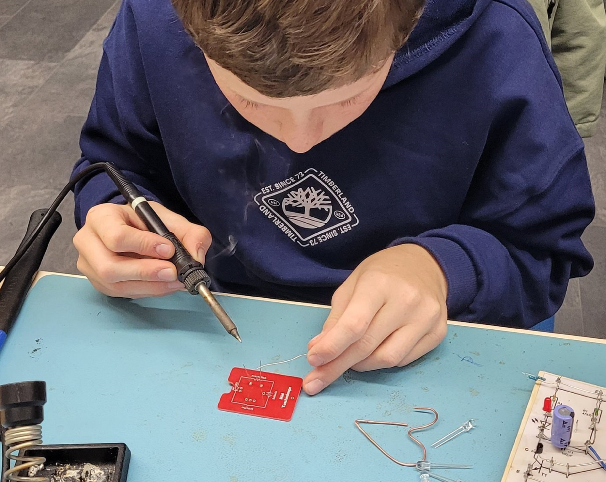 Du wirst mit dem Lötkolben Widerständen, Transistoren und LEDs auf eine Platine löten. Das fertige Smiley, mit dem Du Deine Stimmung ausdrücken kannst, darfst Du mit nach Hause nehmen.